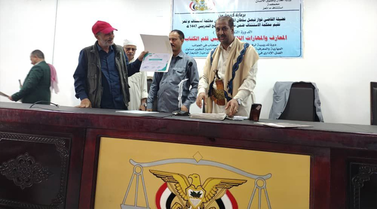 رئيس محكمة استئناف تعز يختتم الدورة التدريبية المعارف والمهارات اللازمة لرؤساء أقلام الكتاب بالمحاكم