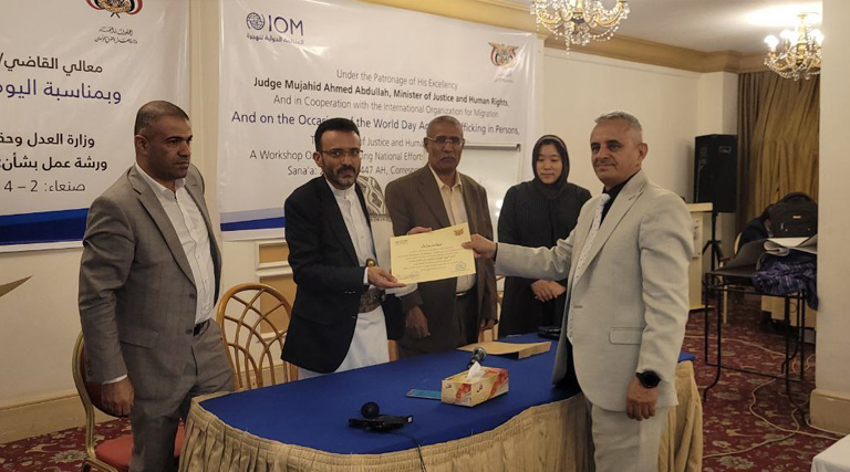 وخلال الإختتام الذي حضره علي صالح تيسير رئيس الهيئة الوطنية لحقوق الانسان، والقاضي خالد البغدادي رئيس المكتب الفني بالوزارة ، أكد نائبُ وزير العدل وحقوق الإنسان القاضي إبراهيم مُحمَّد أحمد الشامي أن التوصيات التي خلصت إليها الورشةُ تمثل خارطةَ طريقٍ لتعزيز الجهود الوطنية في مُواجهةِ هذه الجريمة.