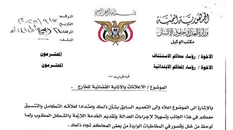 وأوضح وكيل وزارة العدل لقطاع المحاكم القاضي عبده إسماعيل راجح أن الوزارة رصدت بعض أوجه الخلل والقصور في المخاطبات الواردة من بعض المحاكم بهذا الشأن، مؤكداً أن الالتزام بالضوابط يمثل ضمانة أساسية لسلامة الإجراءات وصحتها.
